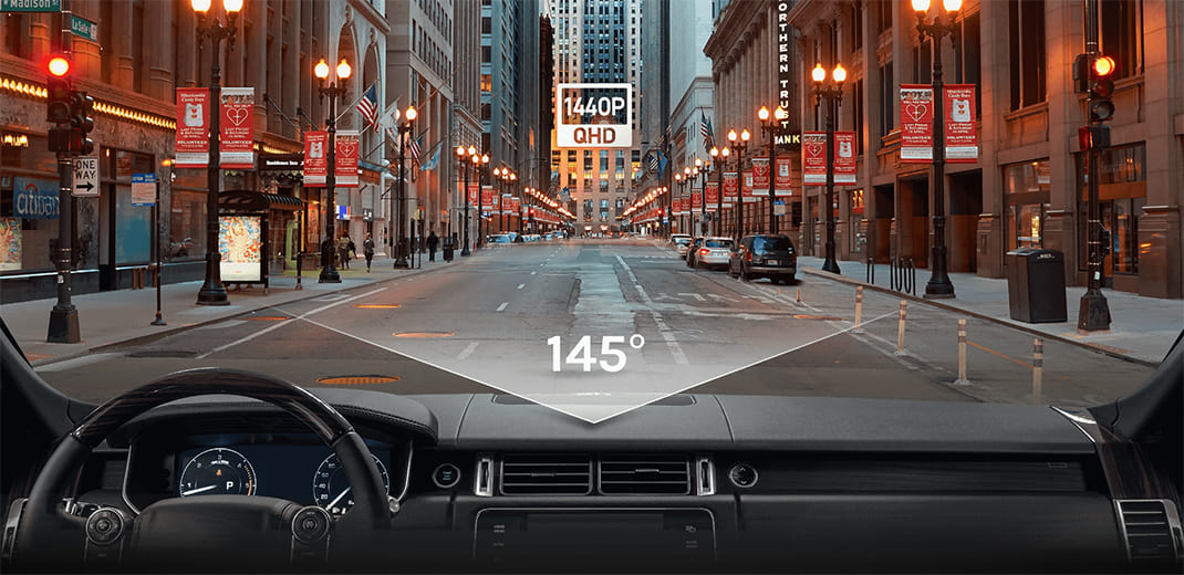 Видеорегистратор оборудован 3.6-мегапиксельным модулем для съемки в разрешении 2К (2560 х 1440 пикселей). Угол обзора составляет 145 градусов, что позволяет захватить в кадр не менее трех полос движения и обочины.