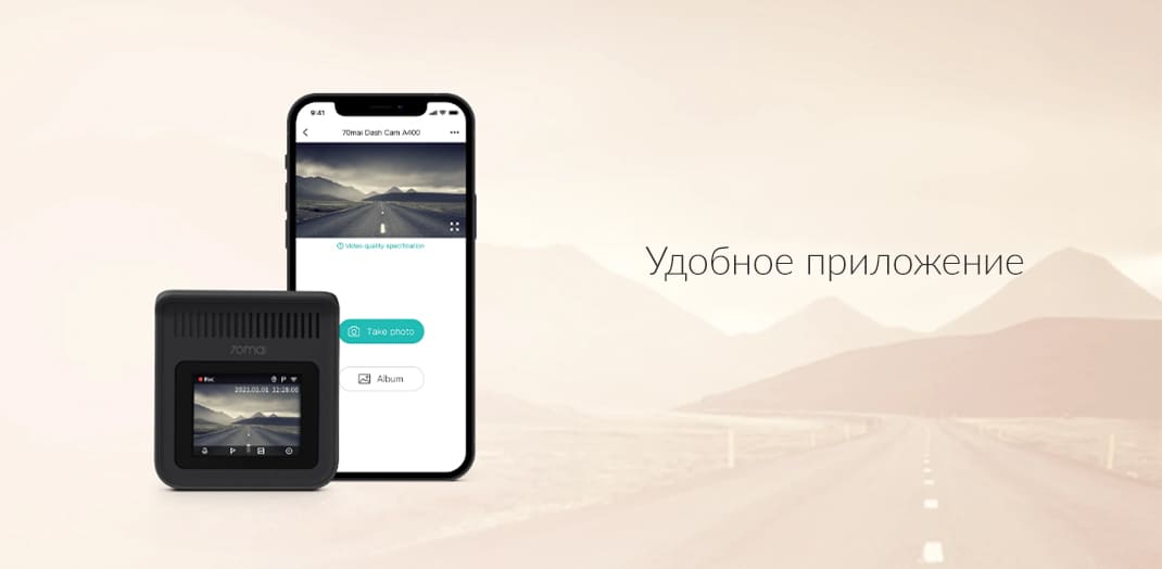 Благодаря встроенному Wi-Fi видеорегистратор Xiaomi 70mai A400 может управляться с помощью смартфона через приложение 70mai: просматривайте отснятый материал, делайте снимки и загружайте файлы на смартфон.